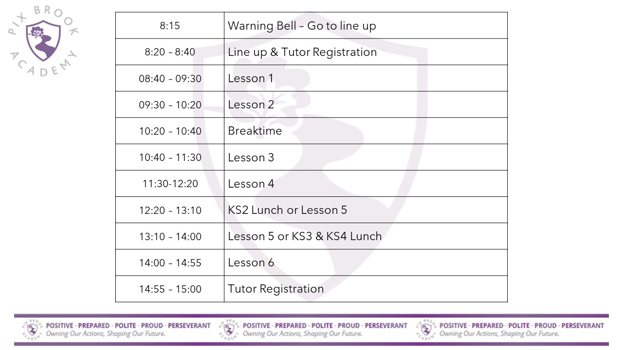 The Academy timetable is operated as a weekly cycle.